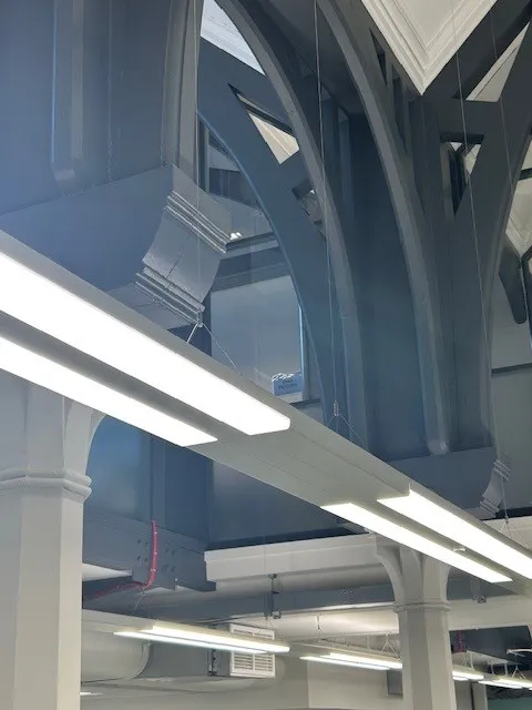 The refurbishment introduced advanced systems for electrical and mechanical services, including new lighting, heating, ventilation, and monitoring systems. Additionally, the scheme marked the first implementation on campus of remote control for central lighting, thermostatic radiator valves (TRVs), and CO2 monitoring.