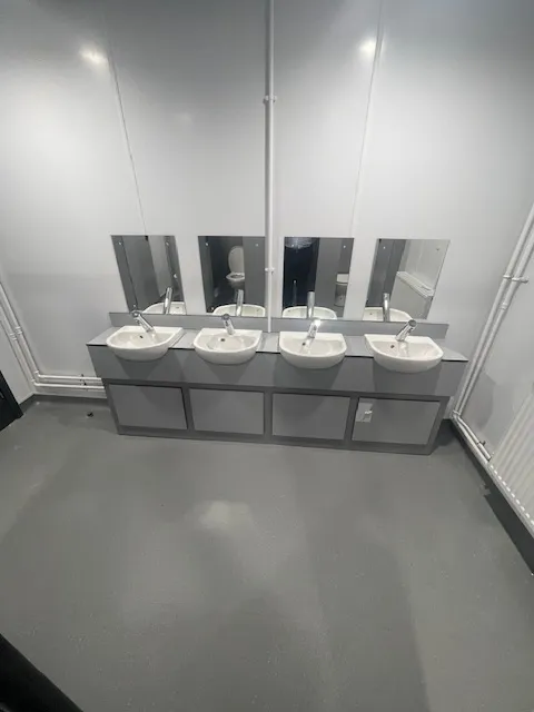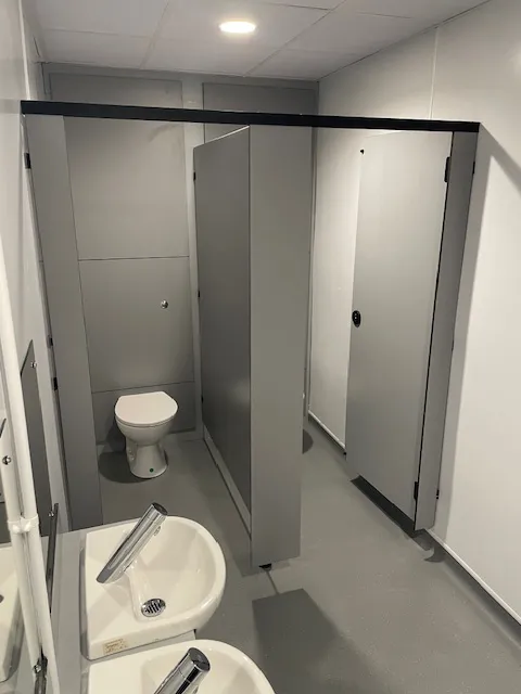 Elite undertook the isolation of all mechanical and electrical services, full removal of the old toilets, wash basins, toilet cubicles, suspended ceiling, sanitary ware and lighting. We supplied and installed: new white hygienic wall cladding for a low maintenance approach, new toilet cubicles and vanity units for sink, new hand wash basins, toilets, hand dryers and mirrors. We also supplied and installed new anti-slip vinyl flooring, a new suspended ceiling with white wipeable ceiling tiles, new lighting on PIR sensors and new hand dryers.